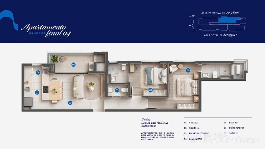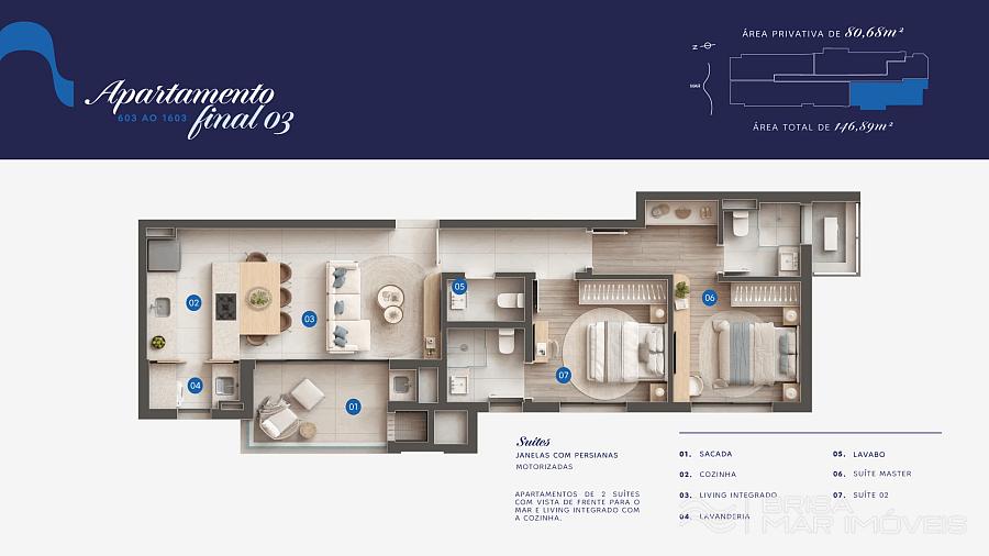 Final 3S – 118 m² | 3 suítes | 2 vagas | Sacada com churrasqueira