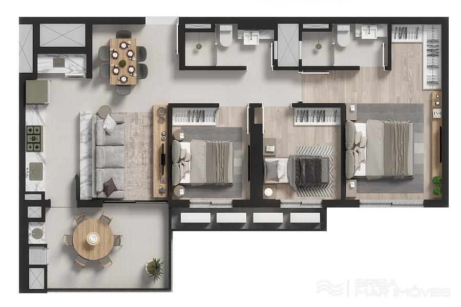 • Plantas de 3 dormitórios (a partir de 87,61 m² com 1 suíte)