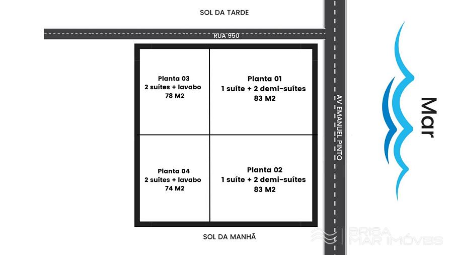 Distância do mar: 200 metros da praia, localizado entre a Rua 950 e a Avenida Emanuel Pinto, região com comércio, serviços e fácil acesso à orla.