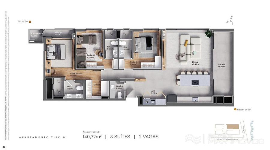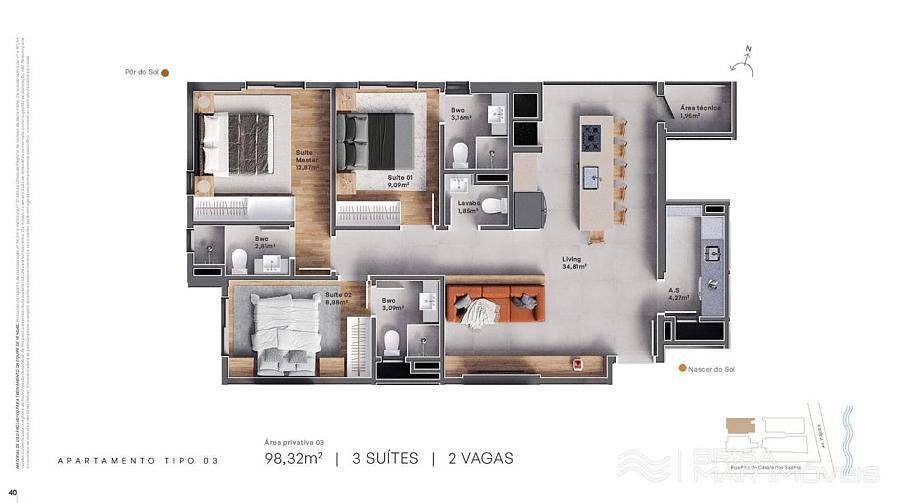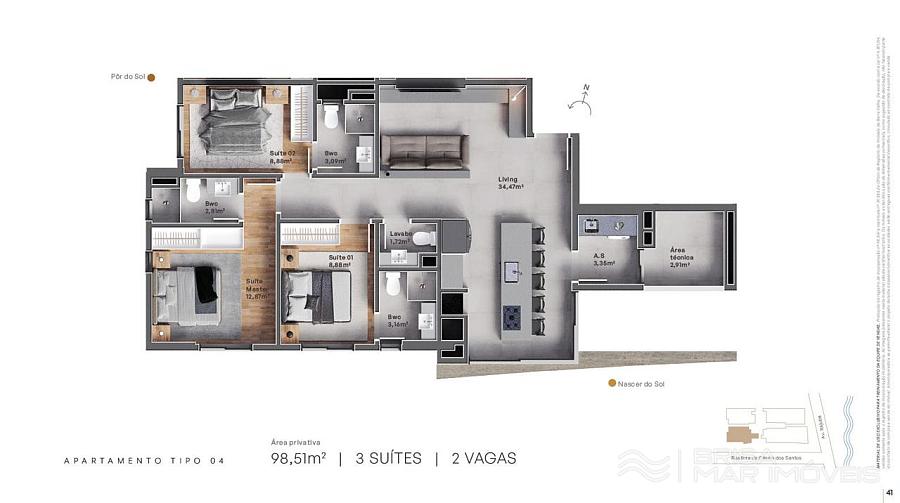 Plantas Final 03 e 04 Laterais com vista mar 3 suítes de 98,51m² privativos