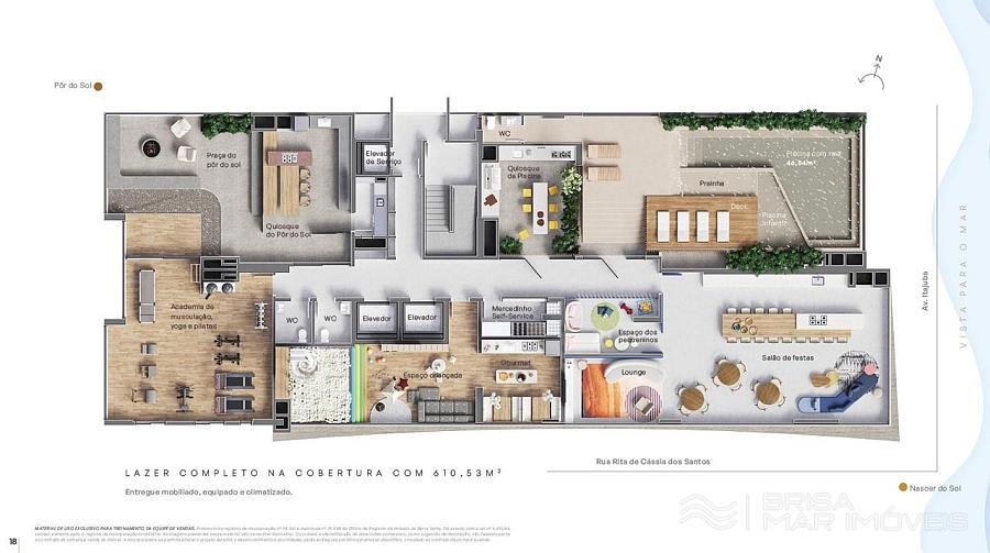 • Espaços de Convívio: Confraria para momentos sociais, salão de festas com vista panorâmica, academia completa, estúdio pilates, espaço gourmet, longe, pub