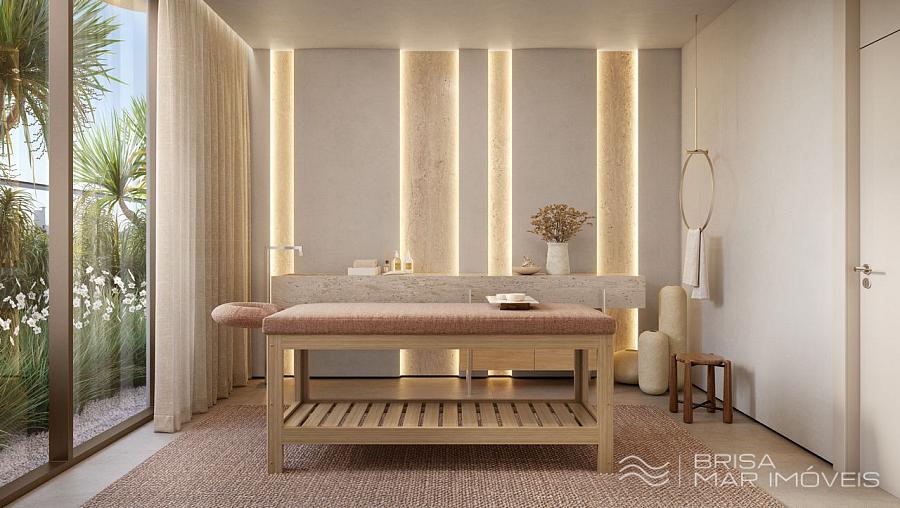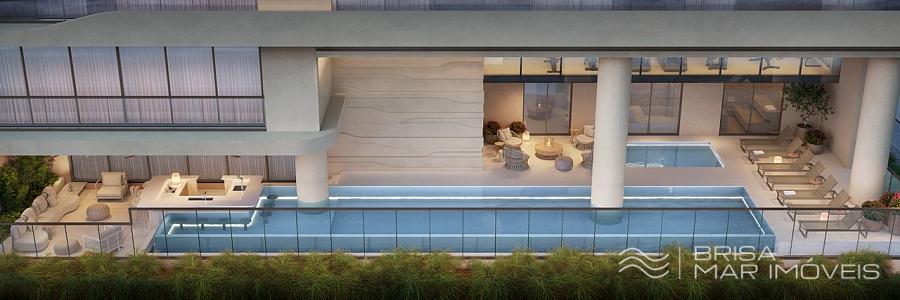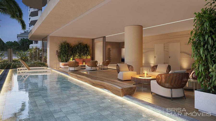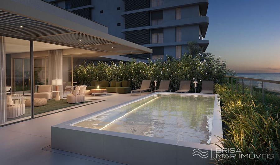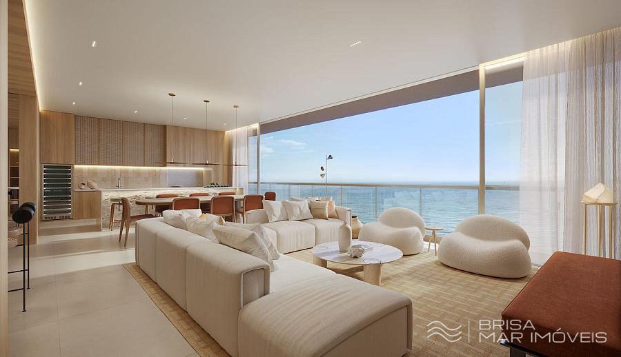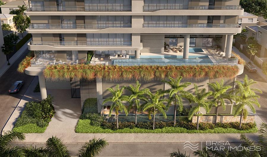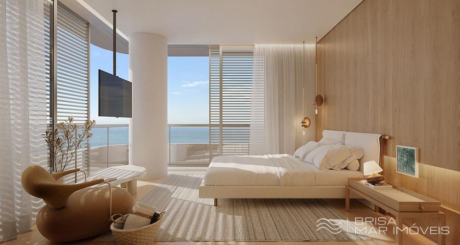 O empreendimento apresenta uma fachada com aproximadamente 20 metros de frente para o mar, hall de entrada imponente, elevadores privativos e acabamentos de alto padrão em todas as áreas. Os interiores foram projetados com foco em conforto, estética e funcionalidade, oferecendo plantas amplas que valorizam a experiência de moradia e convivência.