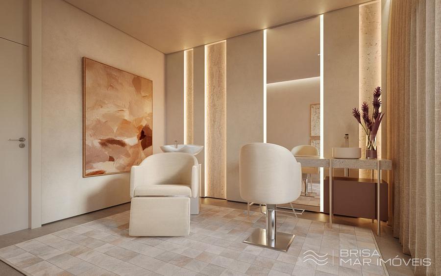A área de lazer possui cerca de 1.300 m² distribuídos entre ambientes internos e externos, incluindo piscina externa com bar molhado, piscina interna aquecida, spa com sauna seca e úmida, sala de massagem, espaço beauty, brinquedoteca, playground, área pet, academia completa de alto padrão, salão de festas e espaços sociais refinados. Todos os ambientes são entregues mobiliados, equipados e climatizados, seguindo o padrão premium da construtora.