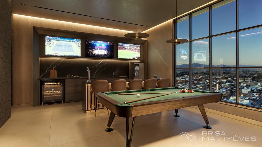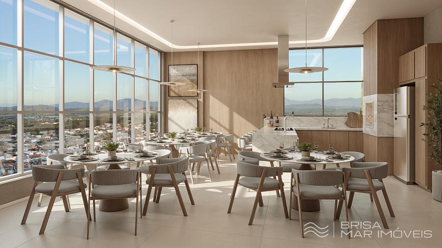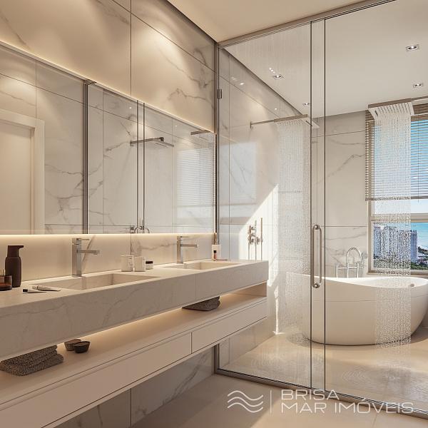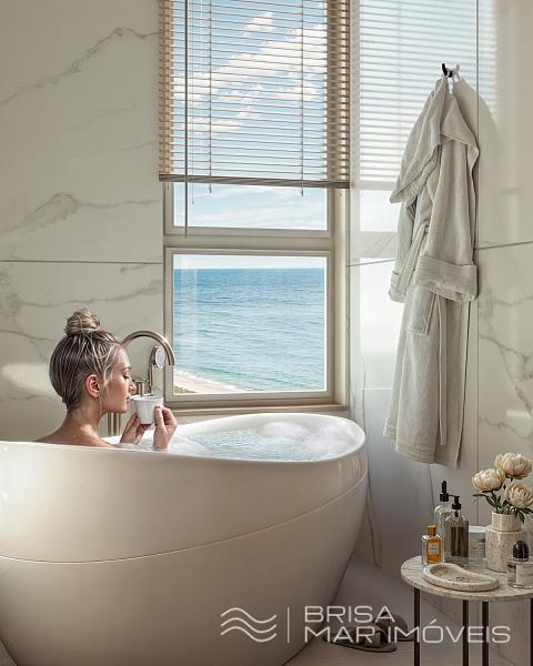 Estrutura de Lazer: Piscina aquecida com borda infinita e vista para o mar, Espaço gourmet, Salão de festas, Espaço fitness, Playground, Brinquedoteca, Área de convivência ao ar livre.
