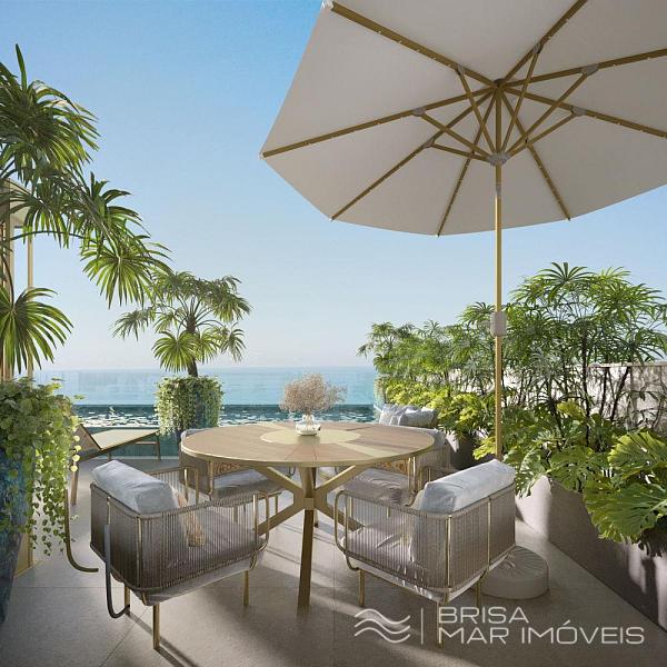 Os apartamentos variam de 79,95m² a 126,40m² privativos, opções com 2 ou 3 suítes, living integrado, sacada com churrasqueira a carvão, lavabo, além de unidades diferenciadas com terraços externos e vista para o mar.