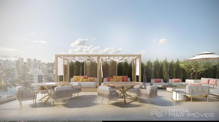 Os apartamentos variam de 79,95m² a 126,40m² privativos, opções com 2 ou 3 suítes, living integrado, sacada com churrasqueira a carvão, lavabo, além de unidades diferenciadas com terraços externos e vista para o mar.