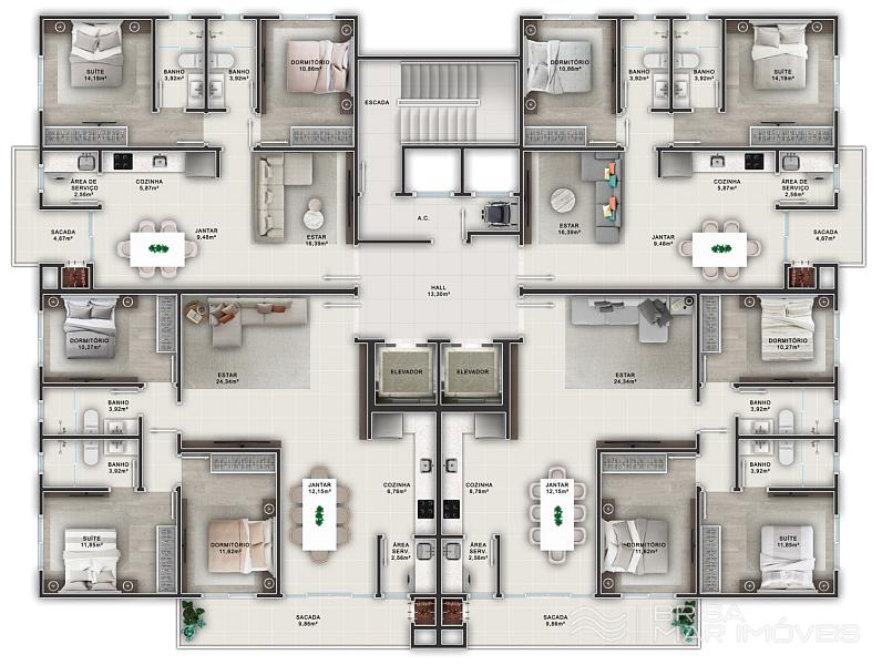 3 quartos – 112m² privativos, 2 vagas – consultar valor