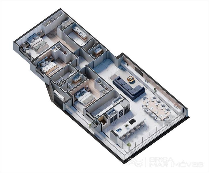 Plantas com 3 suítes frente mar com 152,43m² - planta deste anúncio