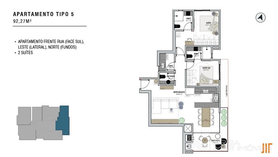 • TIPO 05: 2 Suítes – 92,27 m² | Sacada com Churrasqueira