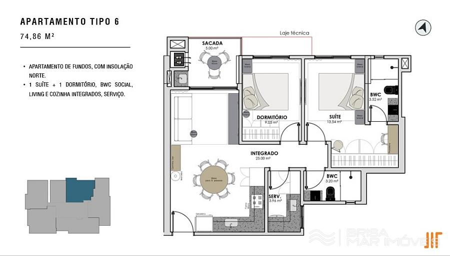 • TIPO 06: 1 Suíte e 1 Dormitório – 74,86 m² | Sacada com Churrasqueira - Valor deste anuncio.