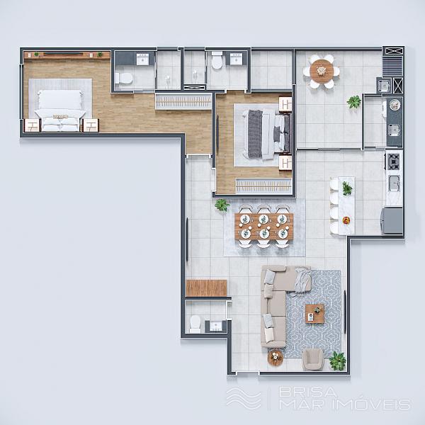 Com previsão de entrega para 2027, este apartamento conta com 82m² privativos, oferecendo um projeto funcional e inteligente. A planta é composta por 2 suítes, lavabo, living integrado e 1 vaga de garagem. Destaque para as janelas panorâmicas nos dormitórios, que proporcionam iluminação natural e uma belíssima vista para o mar e para a paisagem da cidade.