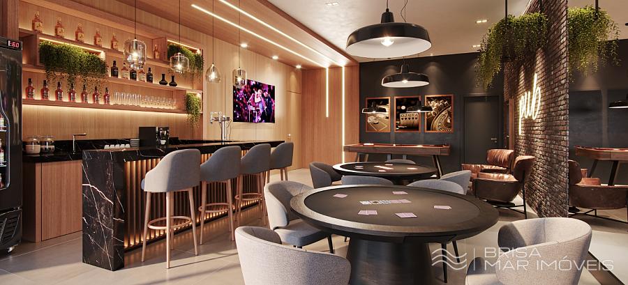 Estrutura de Lazer = mais de 450m² de área de lazer distribuídos em ambientes decorados e mobiliados. Entre os principais destaques estão o salão de festas com churrasqueira a carvão, brinquedoteca, academia, piscina com bar, além de um charmoso American Pub Bar, criando um verdadeiro espaço de convivência e lazer.