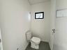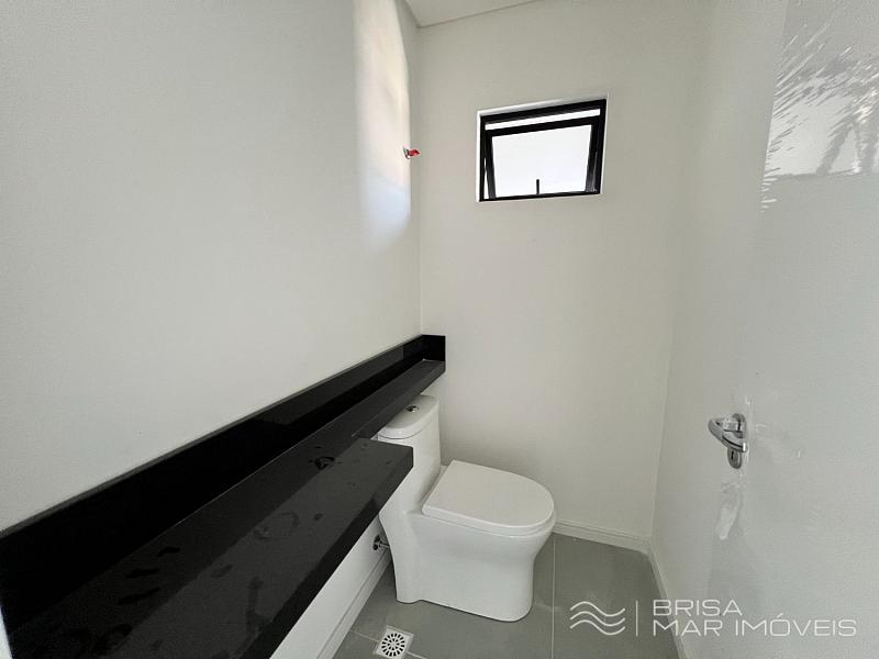 Banheiro social, piso porcelanato, portas brancas, teto rebaixado em gesso
