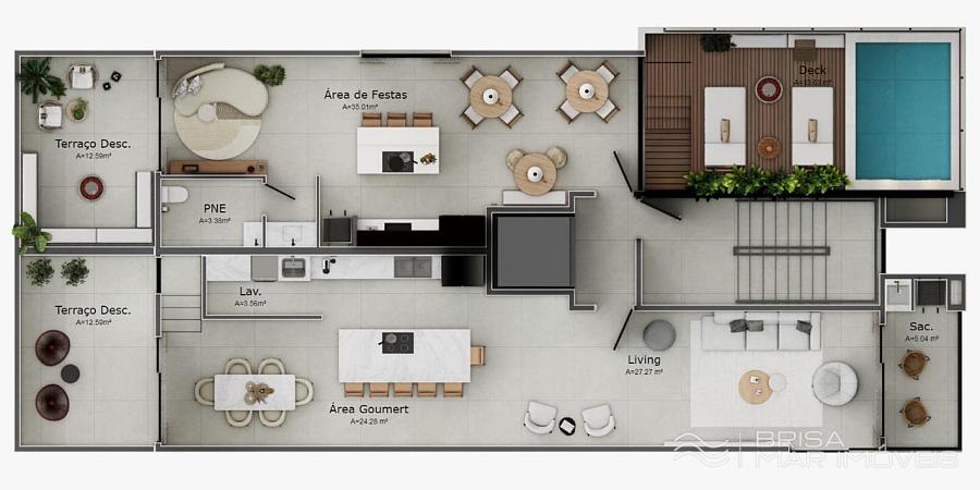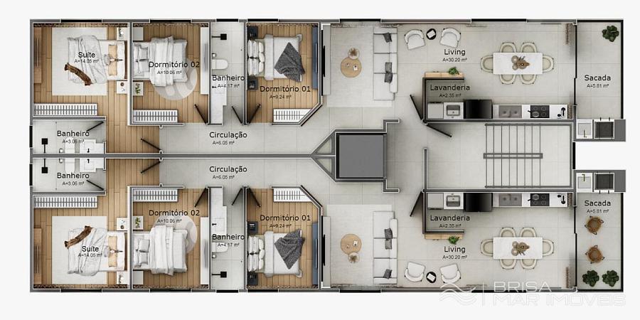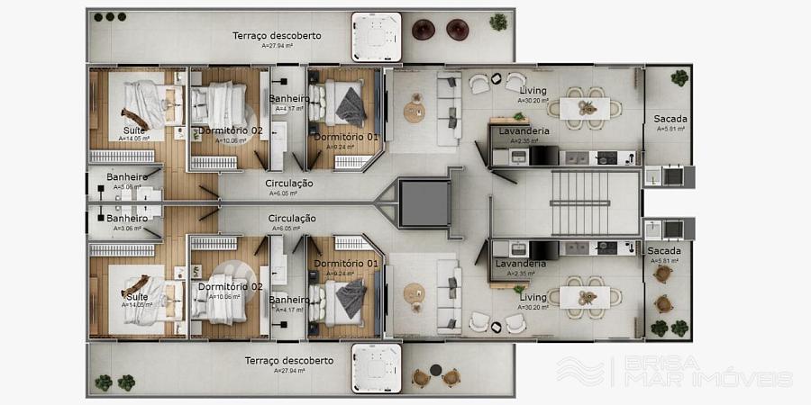 • Apartamento Duplex: 158,73 m² com 3 suítes.